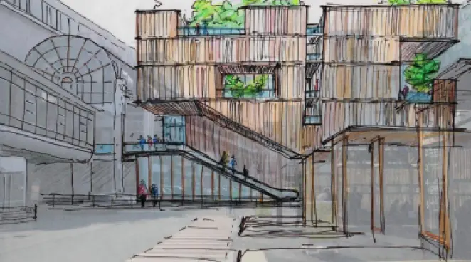森のカーボンストックの定量化と「まち」におけるカーボンストックの増大の実現に向けて、木造建築部材・構法の開発とその活用デザインの提案に取り組みます。