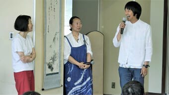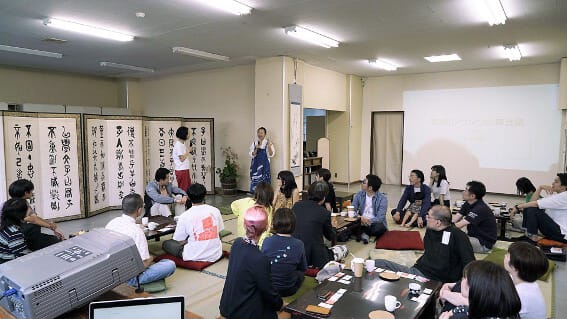 参加者でちゃぶ台を囲み、“お茶っこ※2の時間のような落ち着いた空間のなか、ゲストや美郷町民サポーターを交えたトークセッションが行われました。