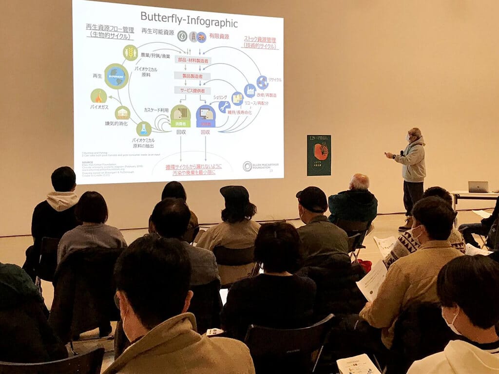 講演では、バイオエコノミーについての概説とともに、欧米で加速的に進むバイオエコノミーの標準化・基準化の実態とその理念に基づいたビジネスやものつくりの具体例が紹介されました。