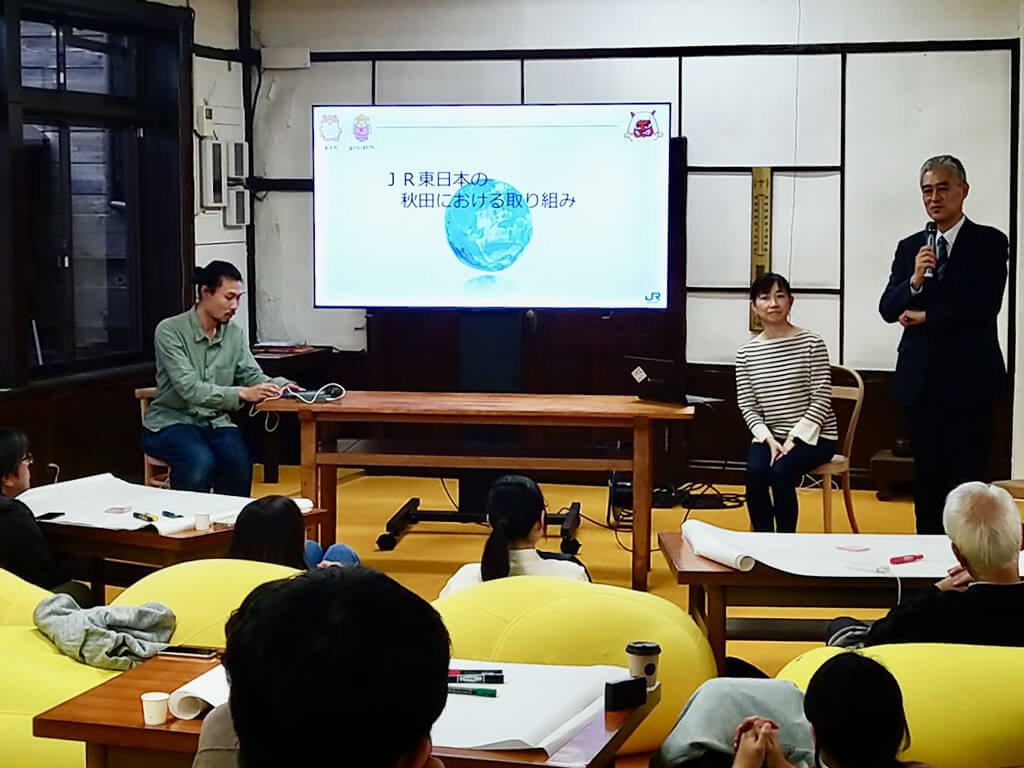 JR男鹿駅周辺を舞台に、男鹿で最近出てきた・これから出てくる取り組みが各取り組みの代表から紹介されました。