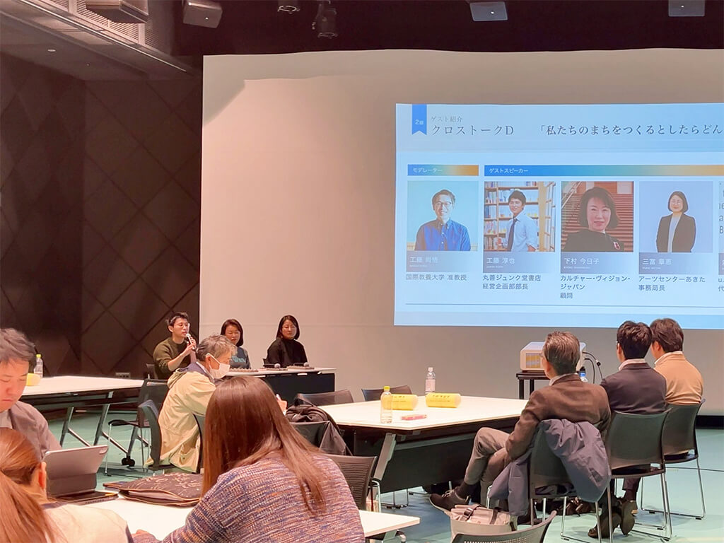 技術に特化した秋田県立大学、価値の言語化や相対化を導く国際教養大学、それらのニーズを読み解いてまちづくりやものづくりのデザインやアートワークを担う秋田公立美術大学、それぞれの強みを活かし、弱みをカバーする三大学の連携がクロストークで語られました。