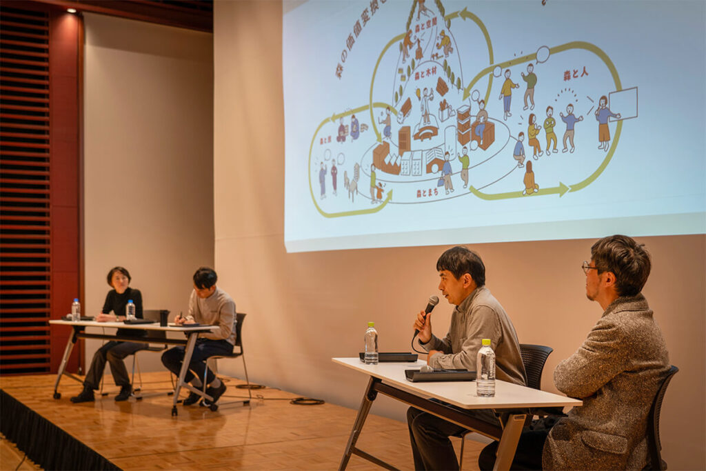 秋田県立大学、国際教養大学および秋田公立美術大学、株式会社Q0の連携協力プロジェクト、共創の場支援プログラム(COI-NEXT)「技術x教養xデザインで拓く森林資源活用による次世代に向けた価値創造共創拠点」の総括として、これからの秋田の地域をどのようにソウゾウしていくのかという議論や強力なアクションへの期待が述べられました。