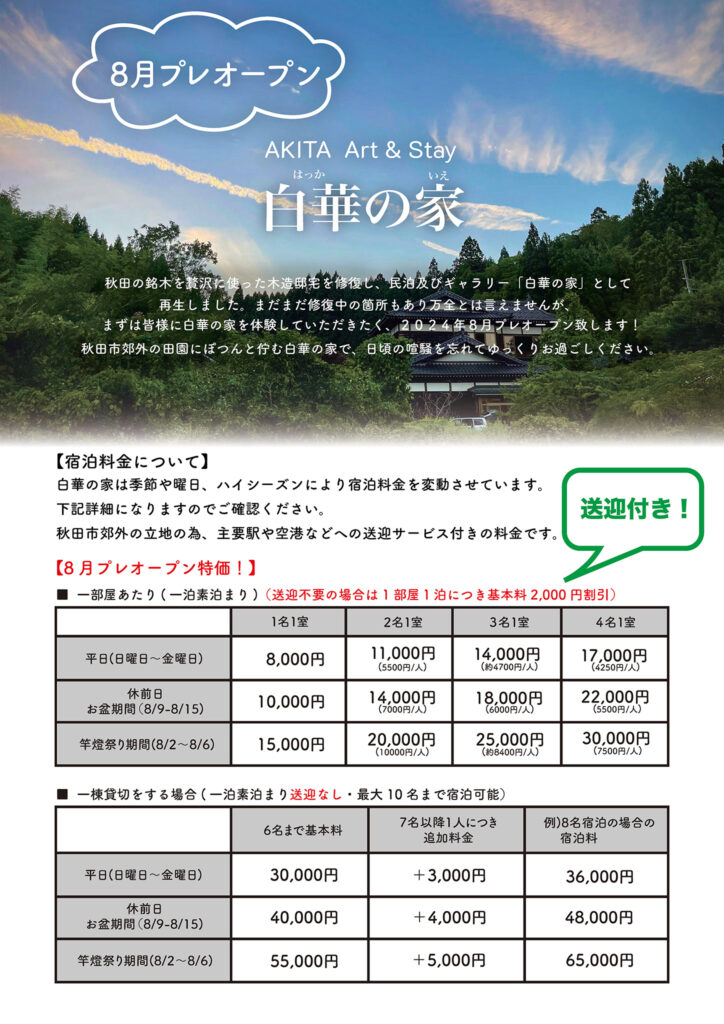 この夏(8月〜)、秋田市豊岩に民泊施設&ORAeギャラリーとして「白華の家」をオープンさせます!